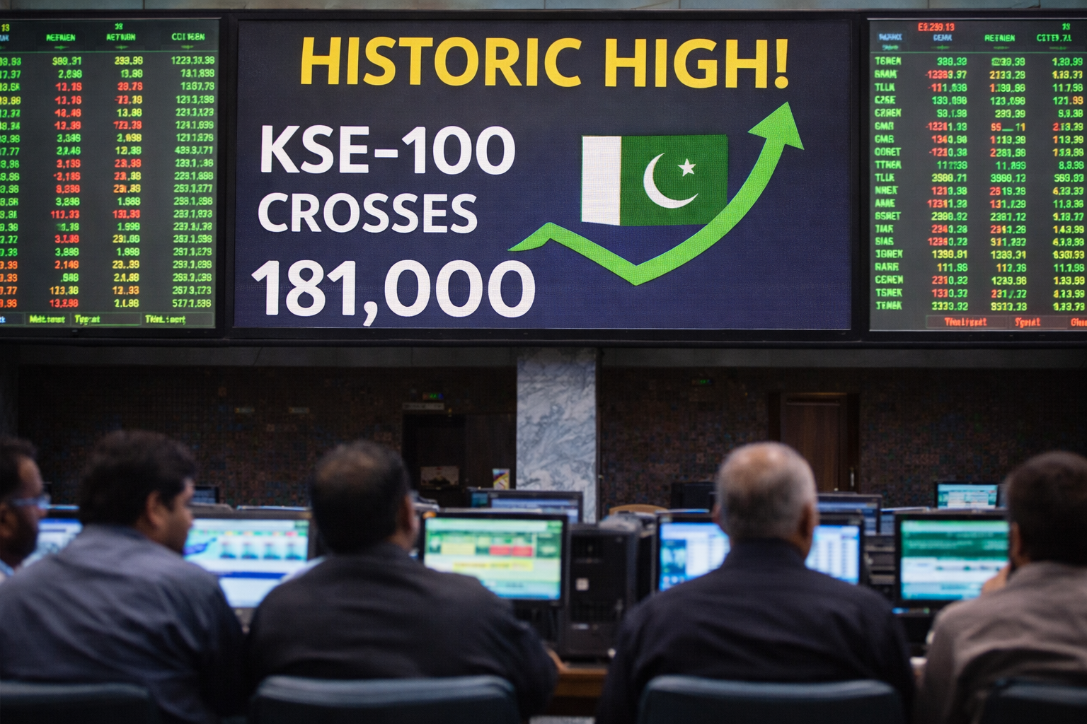 Pakistan’s stock market opened the week on a powerful note as the KSE-100 Index surged past the 181,000-point mark, setting a new all-time high in early trading. The strong start reflects growing investor confidence, driven by steady buying across major sectors and optimism around the broader economic outlook. Market activity remained upbeat from the opening bell, with banking, oil and gas, cement, and power stocks leading the rally. Analysts noted that buying interest was widespread, suggesting participation from both institutional investors and retail traders. The index’s rapid climb past a major psychological level added momentum and reinforced the bullish mood on the trading floor. Several factors appear to be fueling the surge. Expectations of improved corporate earnings have played a key role, especially among large-cap companies with strong balance sheets. Investors are also reacting positively to signs of macroeconomic stability, including easing inflation pressures and a relatively stable exchange rate. These indicators have helped reduce uncertainty and improve risk appetite. Another contributor has been the expectation that Pakistan could see stronger capital inflows if economic reforms stay on track. Market observers say investors are closely watching fiscal discipline, monetary policy signals, and progress on external financing. Any clarity in these areas often reflects quickly in equity prices. According to market analysts, the KSE-100’s performance also highlights a shift toward value-based investing, with traders favoring stocks that offer consistent dividends and long-term growth potential. This trend has helped sustain gains rather than limit them to short-term speculation. Despite the celebratory mood, experts urge caution. Stock markets can change direction quickly, especially if global conditions turn volatile. Developments related to interest rates, energy prices, and geopolitical tensions could still influence sentiment. Investors are advised to stay informed and avoid emotional decision-making. For now, the record-breaking move sends a strong signal. Crossing 181,000 points underscores renewed faith in Pakistan’s equity market and positions it as one of the more closely watched emerging markets in the region. If momentum holds, analysts believe the market could continue testing new highs in the near term.