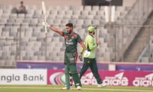 Bangladesh secured a thrilling 11-run victory over Pakistan in the third ODI at the Sher-e-Bangla National Stadium in Mirpur, sealing the three-match series 2-1 after a dramatic contest that went down to the final over. The match turned into a gripping battle between two outstanding individual performances. Bangladesh opener Tanzid Hasan struck a brilliant 107, while Pakistan’s Salman Ali Agha answered with a fighting 106, but Bangladesh ultimately held their nerve to defend a target of 291. Bangladesh finished their innings at 290 for 5 in 50 overs, while Pakistan were bowled out for 279 in their chase, falling short despite a late surge. Tanzid Hasan leads Bangladesh batting effort Bangladesh’s innings was built around Tanzid Hasan’s composed century, which came from 107 balls and laid the foundation for a competitive total on a pitch that offered uneven bounce and some turn. He shared a crucial 105-run opening partnership with Saif Hassan, giving Bangladesh early momentum. Middle-order contributions then kept the scoreboard ticking. Litton Das scored 41, while Towhid Hridoy remained unbeaten on 48 to help Bangladesh reach a challenging total. Pakistan’s bowling attack was led by Haris Rauf, who picked up three wickets, while Shaheen Shah Afridi and Abrar Ahmed chipped in with one wicket each. Pakistan collapse early in run chase Chasing 291, Pakistan got off to a shaky start after Bangladesh’s pace attack struck early. Taskin Ahmed removed key top-order batters including Sahibzada Farhan and Mohammad Rizwan during the powerplay, putting Pakistan under immediate pressure. Pakistan slipped to 67 for 4, leaving the middle order with a difficult task on a tricky Mirpur pitch. However, Salman Ali Agha launched a determined counterattack. The all-rounder scored 106 from 98 balls, anchoring the chase and keeping Pakistan in the contest even as wickets continued to fall around him. Saad Masood and Shaheen Shah Afridi added valuable runs in the later stages, but Bangladesh bowlers kept tightening the screws. Last-over drama seals Bangladesh victory The match produced a tense finish as Pakistan needed 14 runs from the final over with one wicket remaining. Bangladesh spinner Rishad Hossain bowled the decisive over. A dropped catch briefly gave Pakistan hope, but the hosts regained control. In the final delivery, Shaheen Afridi attempted a desperate big shot but missed, allowing Bangladesh to secure the win and the series. Fast bowler Taskin Ahmed finished with 4 wickets for 49 runs, playing a crucial role in Bangladesh’s victory and Pakistan’s collapse. Bangladesh claim historic ODI series win The result marked Bangladesh’s second consecutive bilateral ODI series win over Pakistan after more than a decade, highlighting the team’s growing confidence in home conditions. The Mirpur encounter also turned into one of the most entertaining ODIs of the year, featuring a tense chase, standout centuries and a dramatic final over finish.