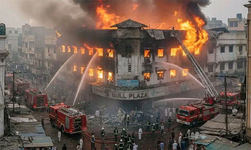 A massive fire at Gul Plaza, one of Karachi’s busiest commercial complexes on M. A. Jinnah Road, has left at least six people dead, dozens injured, and caused billions of rupees in losses, while triggering widespread criticism of the city’s emergency and fire-fighting infrastructure.