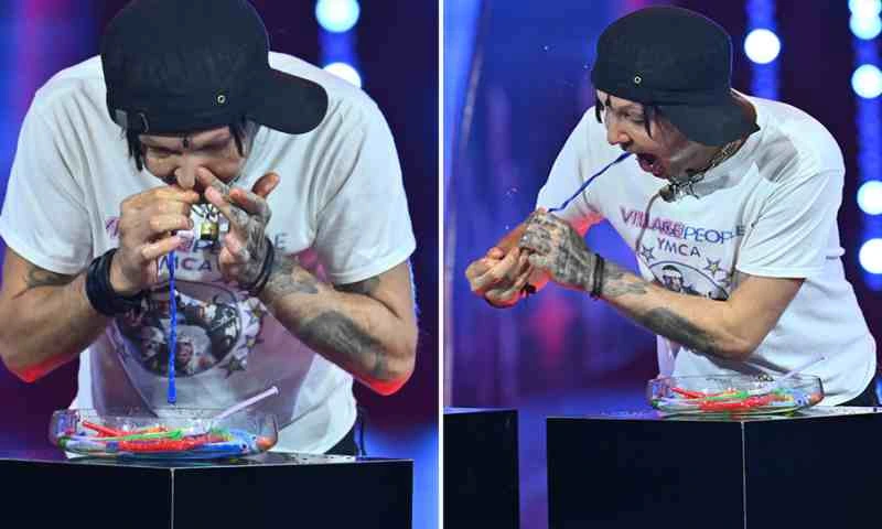 The attempt left viewers both fascinated and uneasy, with many in the audience visibly reacting in shock. Some were seen covering their faces while still trying to watch the unusual act unfold.