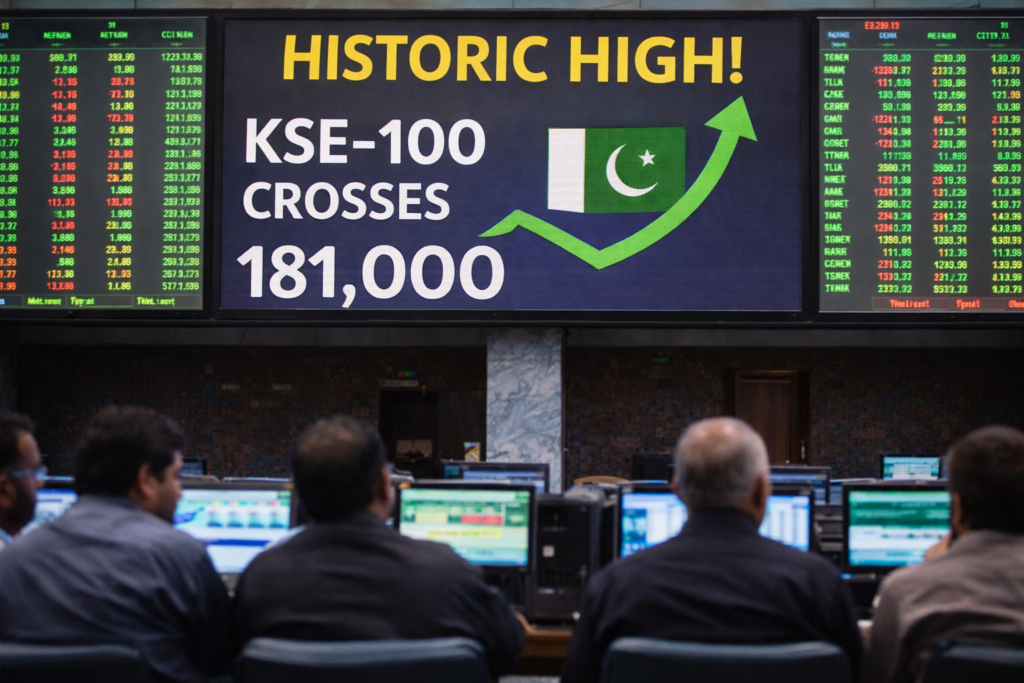 Pakistan’s stock market opened the week on a powerful note as the KSE-100 Index surged past the 181,000-point mark, setting a new all-time high in early trading. The strong start reflects growing investor confidence, driven by steady buying across major sectors and optimism around the broader economic outlook.