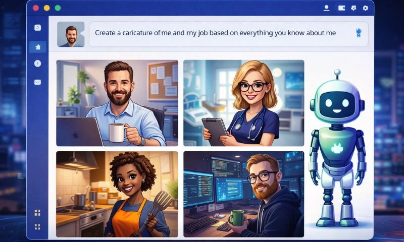 The trend started with a simple prompt that many users are now repeating on platforms like Instagram, X, WhatsApp and LinkedIn: “Create a caricature of me and my job based on everything you know about me.” Based on this, ChatGPT and other AI systems generate cartoon-style portraits that include professional props such as laptops, coffee mugs or tools of the trade, making the caricatures feel personal and relevant.